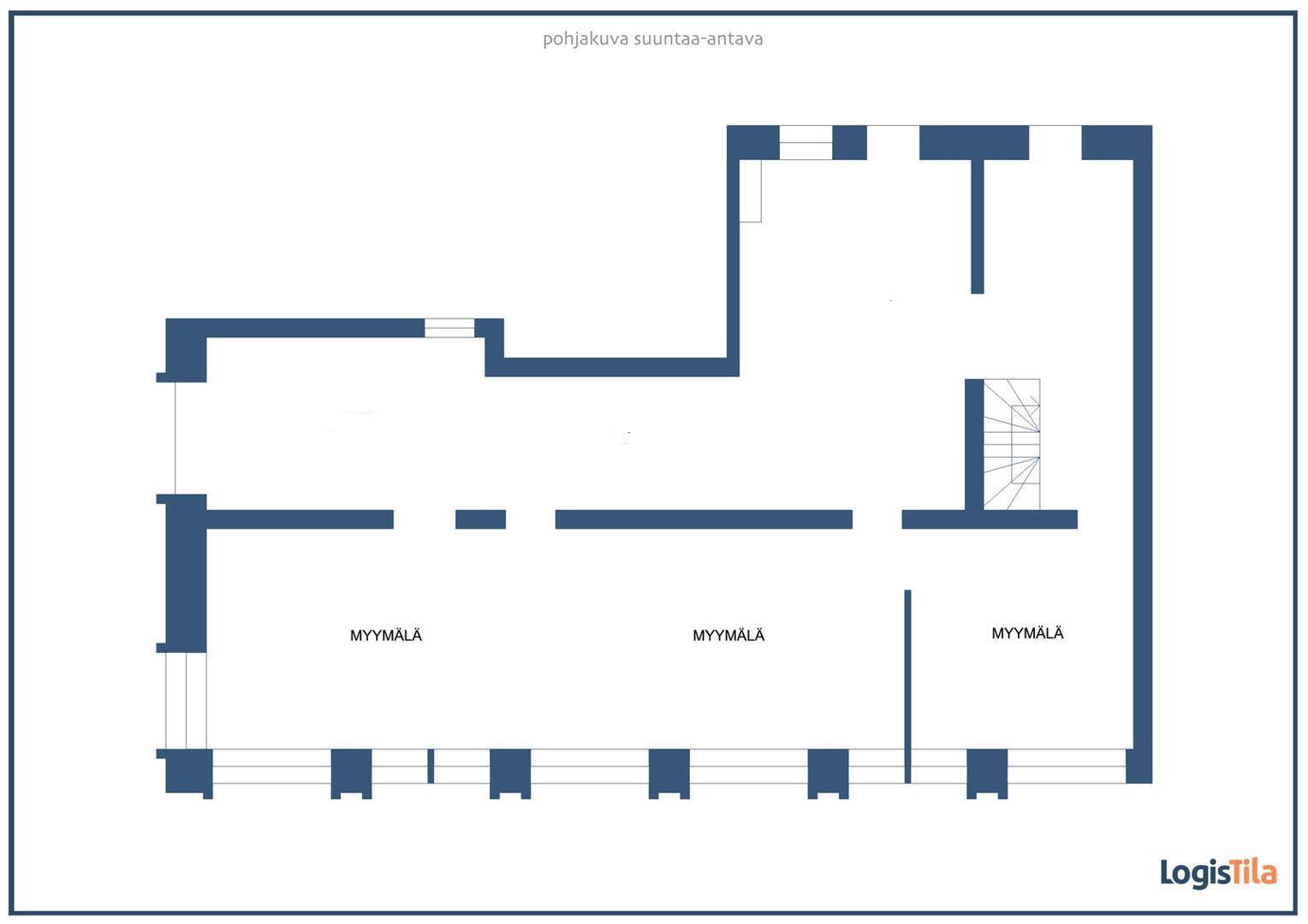 Tässä on tarjolla siisti ja hyvin pidetty liiketila kokonaisuus näkyvällä ja vilkkaalla paikalla. Katutason myymälätilassa on isot näyteikkunat kauppakadulle. Liiketila koostuu useammasta eri huoneistosta ja tila on tarvittaessa jaettavissa erikokoisiksi liiketiloiksi. Katutason liiketilaa on yhteensä n. 128 m2. Tällä hetkellä Alakerrassa on varastotiloja n. 74 m2.