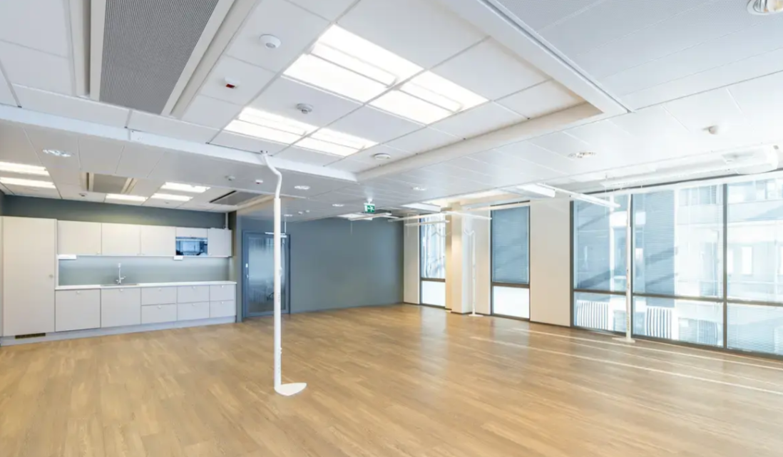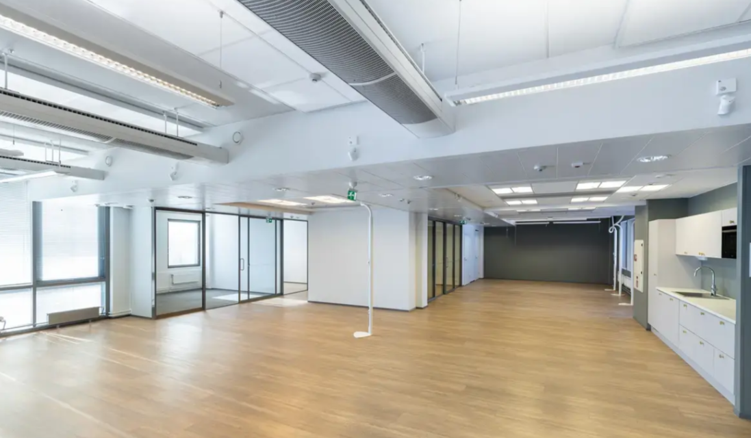 Tämä 219 m²:n toimisto sisältää avotilaa ja työhuoneita upein näkymin. Heti valmiiseen kokonaisuuteen sisältyvät omat wc-tilat ja keittiö, langaton verkkoyhteys (WLAN), siivous, sähkö ja aulapalvelu. Lisäksi käytössäsi on pientoimistoalueen yritysten yhteinen neuvottelutila ja upea lounge. Tuo vain kalusteet ja asetu taloksi – täällä työskentely on helppoa ja mukavaa!