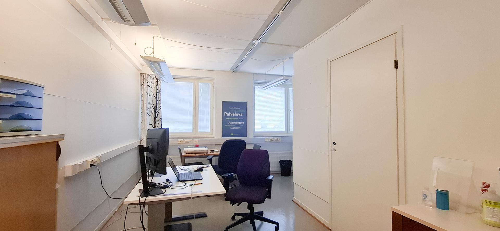 Vuokrataan valoisa ja siisti toimisto Jyväskylän ydinkeskustassa hyvin hoidetusta kiinteistöstä.