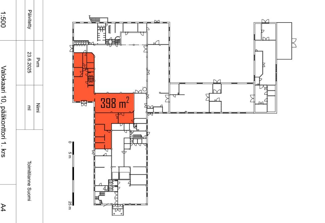 - Tilassa on erillisiä huoneita, avointa toimistotilaa, keittiö sekä wc-tilat.
