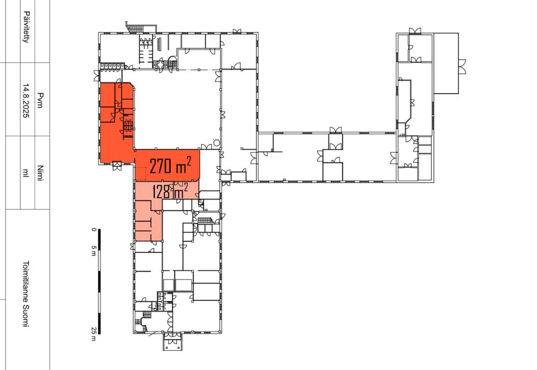 - Tila voidaan vuokrata myös kahdessa osassa: 270 m² ja 128 m².