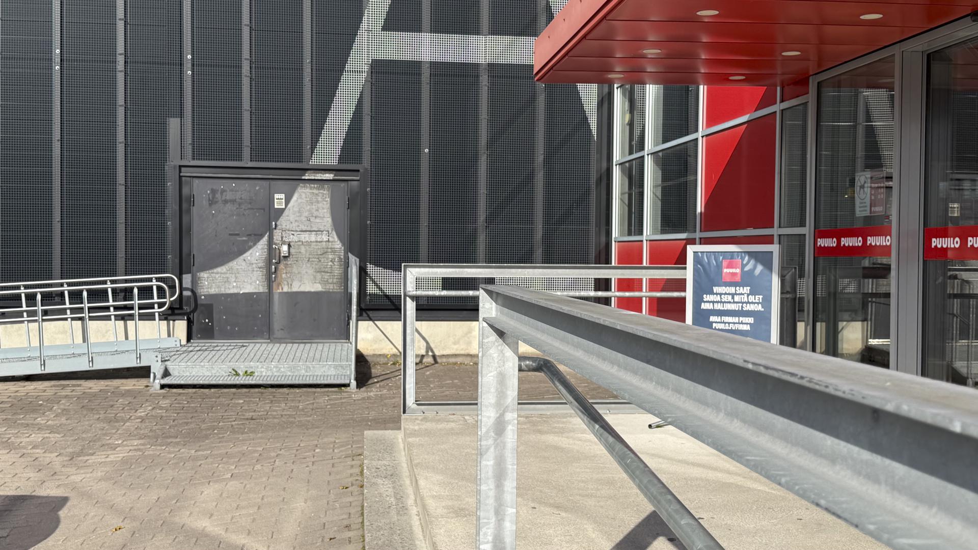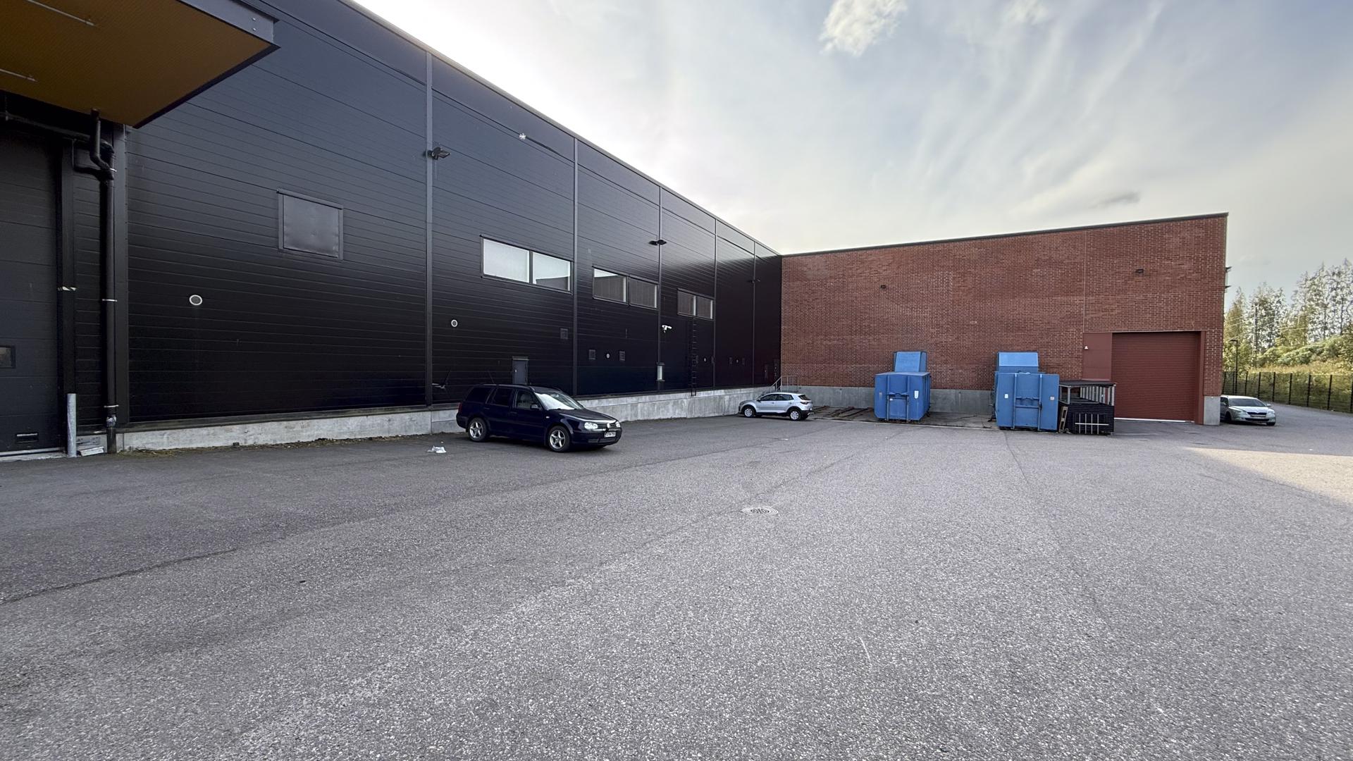 Tavaralogistiikka hoituu kiinteistön takana sijaitsevan lastausalueen kautta. Käyntiovi myös julkisivun puolelta.