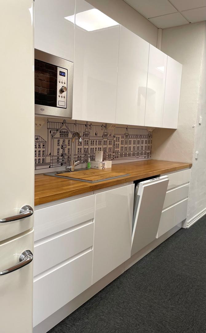Kokonaisuus koostuu kolmesta isosta työhuoneesta, avotilasta, taukohuoneesta ja kopiotilasta/pienestä monikäyttötilasta. Lisäksi tilassa on keittiö ja 2 kpl talon henkeen remontoitua WC-tilaa, joista toisesta löytyy suihku.